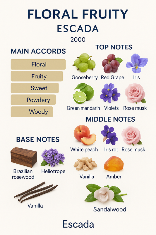 Escada is a global luxury fashion brand founded in Germany. The company made a name for itself with its distinctive, colorful, and decorative fashion. Throughout the 1990s and into the 21st century, Escada released a successful series of perfumes. Escada fragrances are known for their bright packaging and unique bottle designs.