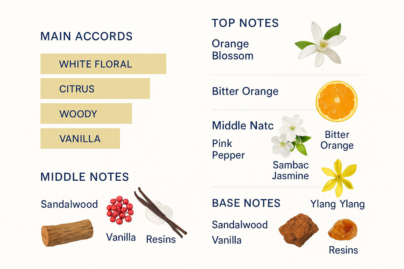 Deep Woody Base: The base rests on warm, aged sandalwood with sweet notes of vanilla and mysterious notes of resins, enhancing durability and luxury.