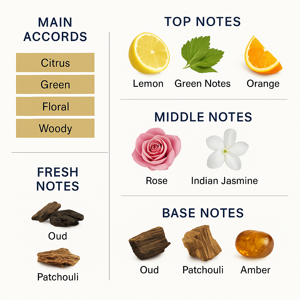 The royal composition is completed with oud, patchouli, and amber, evoking the rich heritage of the kingdom in a majestic and celebratory finish.