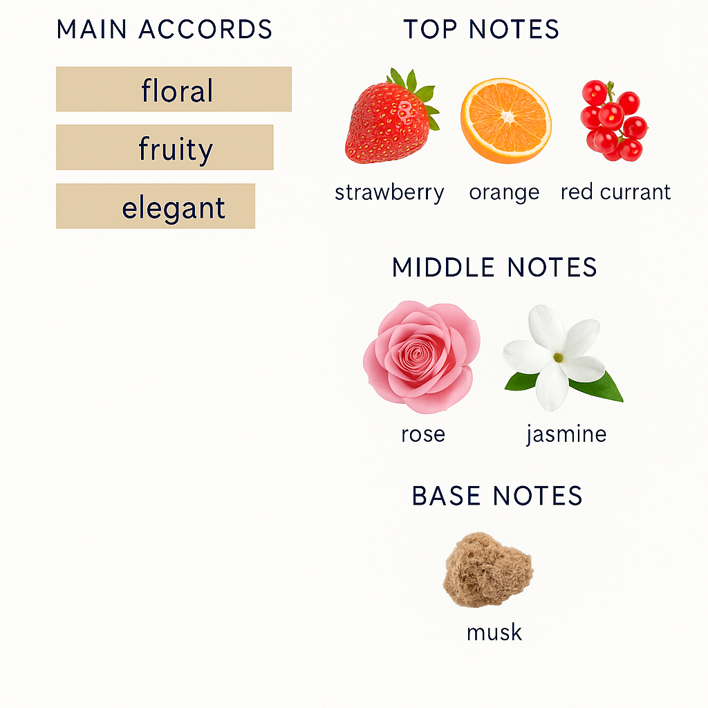 A women’s fragrance from the floral-fruity family, it’s both elegant and irresistibly charming.