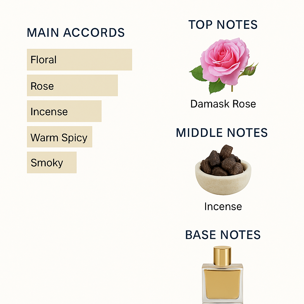 From the blooming meadows of Damascus, we gathered the finest roses and wrapped them in warm incense, all enclosed in an elegant perfume bottle that holds a scent meant to touch your soul from the very first encounter.