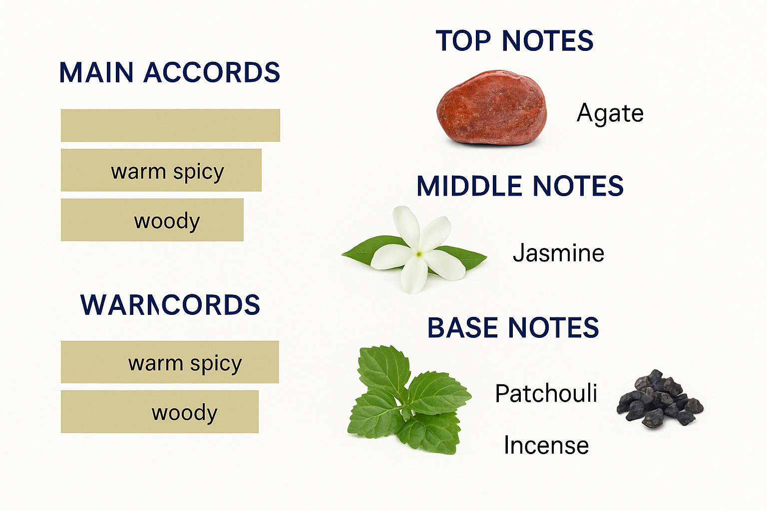 A fragrance inspired by the red agate from the depths of the Bosphorus, enriched with warm scents of patchouli and incense, lovingly blended with delicate notes of jasmine, allowing you to experience a unique charm and irresistible allure.