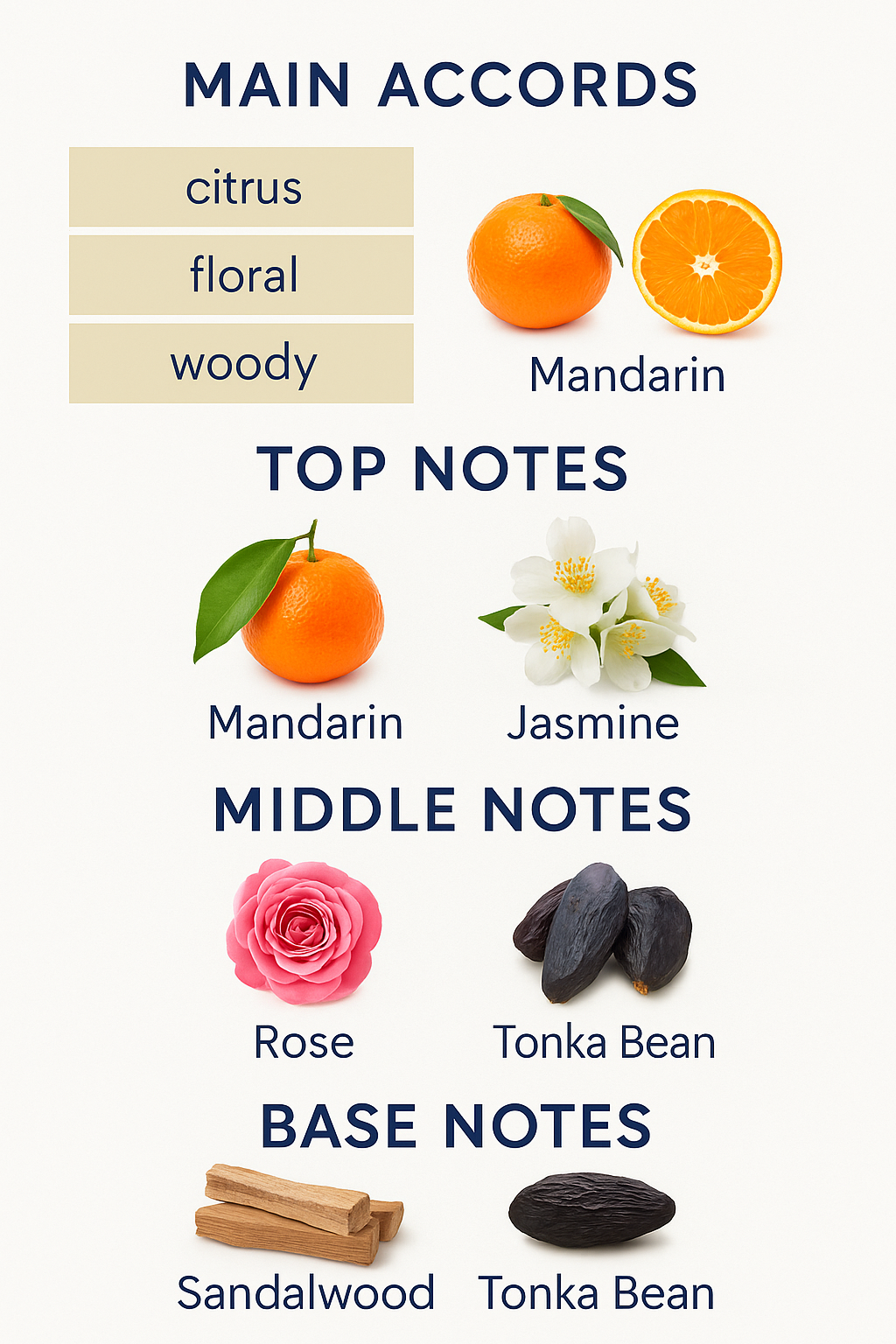 An ancient Roman-inspired fragrance, resembling the shimmering gemstones of history, this scent boasts an elegant blend of mandarin and orange enveloped in the fragrance of roses and jasmine, complemented by warm touches of sandalwood and tonka beans.