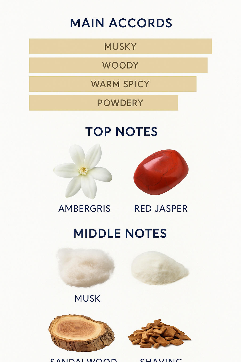 It is rich with luxurious musk, blended with the warmth of sandalwood, giving you the strength and vitality to embrace every day with confidence.