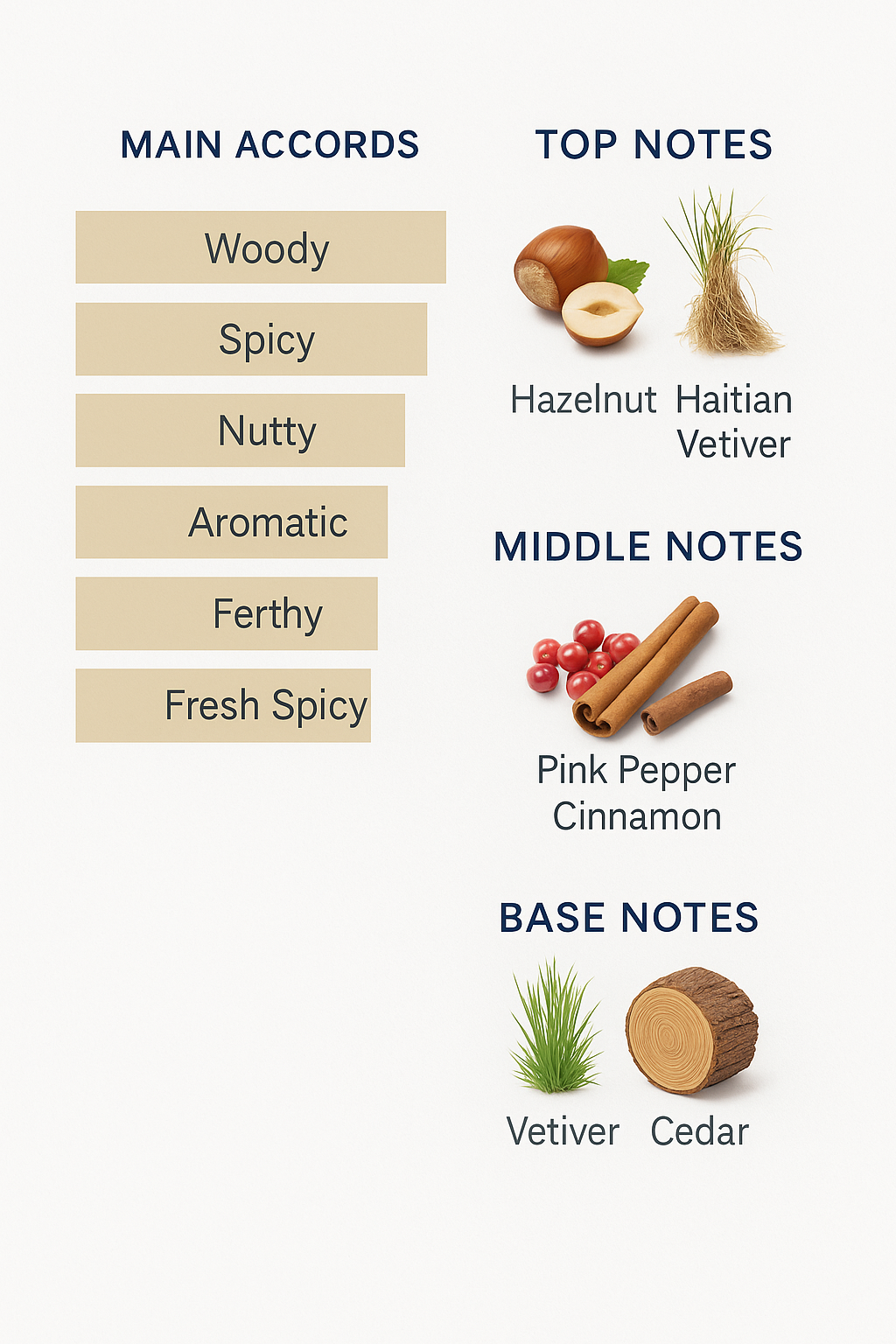 The fragrance shines with a fragrant and exciting scent of Haitian vetiver and hazelnut.