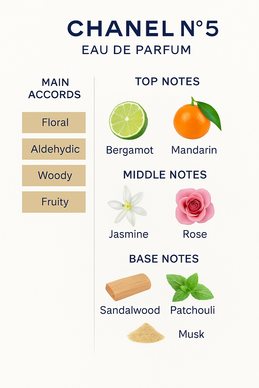 Chanel N°5 Eau de Parfum for Women 100ml is a floral, fruity fragrance for women, launched in 1921 by the famous French fashion house Chanel. This fragrance is one of the most famous perfumes in the world and is considered an icon of women's perfumery. A journey through the opening notes of Chanel N°5, where fresh notes of bergamot and mandarin harmonize with touches of aldehydes to create a sense of freshness and vitality. The heart: The heart of the fragrance flourishes with a feminine floral bouquet of jasmine and rose, harmonized with fruity touches of peach to create an attractive feminine character. The base: The base rests on a warm woody combination of sandalwood, patchouli, and musk, enhancing durability and leaving an unforgettable, long-lasting effect.