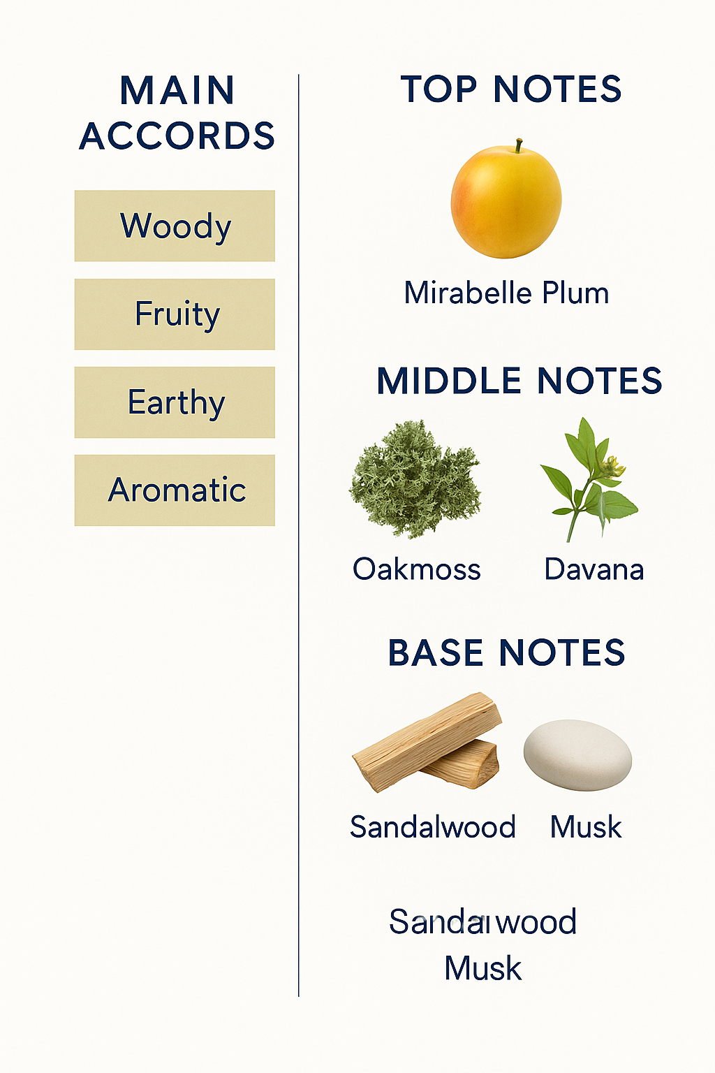 A woody fragrance that is the perfect choice for independent and elegant women. Its composition contains the fresh scent of mirabelle plum, as well as oakmoss and davana at the heart of the fragrance. Sandalwood and musk come in the base of the fragrance, concluding it with a timeless and deep scent.