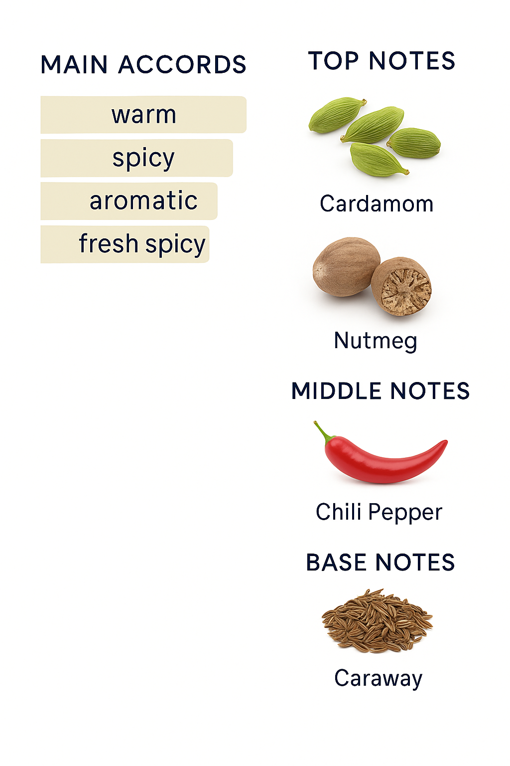A hot and warm blend of cardamom and nutmeg carefully blended with chili pepper.