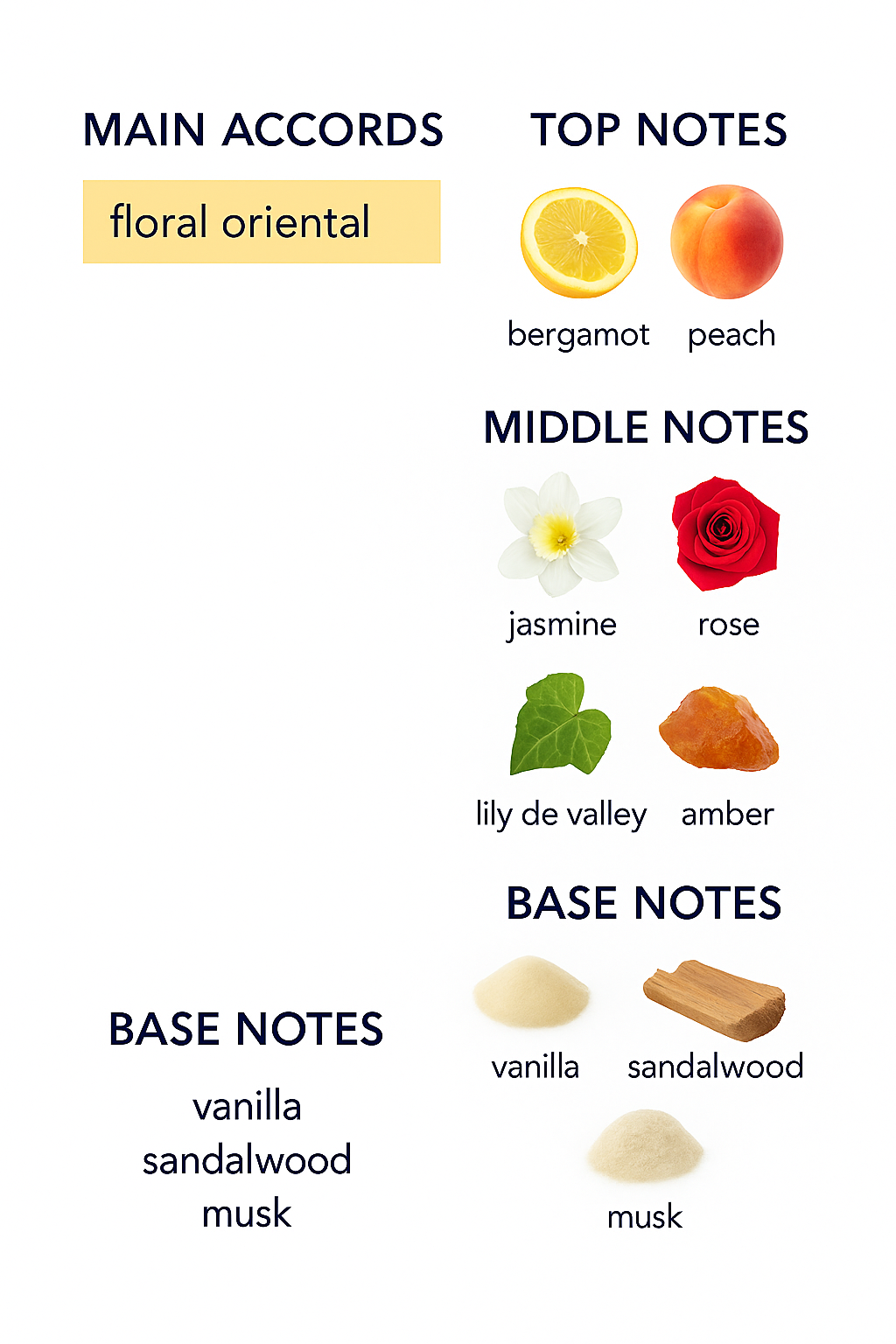 Introduction: The fragrance opens with fresh notes of bergamot, peach, and pineapple, adding a lively and elegant character.