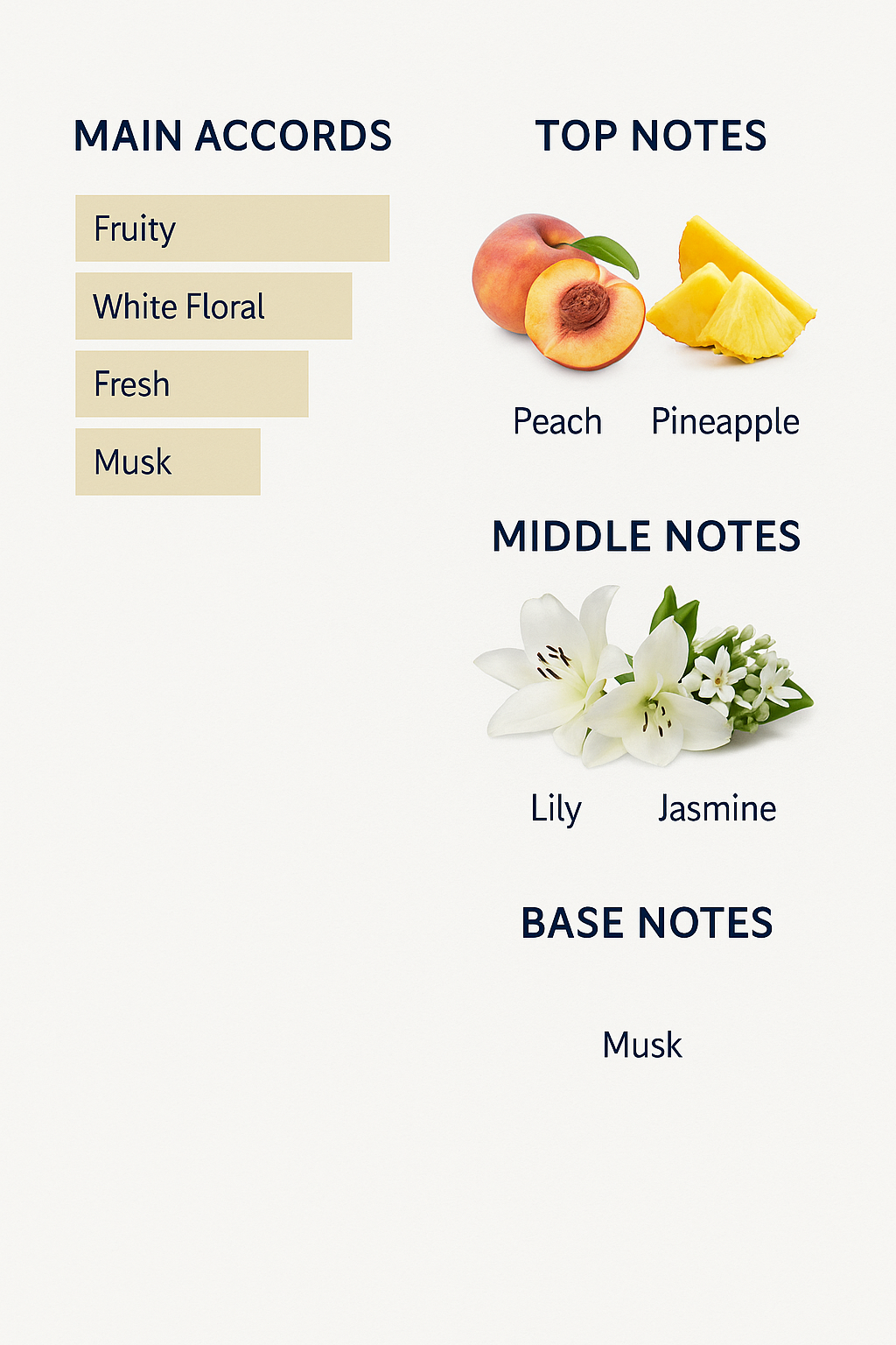 Pamper your soul with the taste of fresh fruits of peach and pineapple that give you a touch of coolness and freshness wrapped in the scents of lily and jasmine with a group of naked scents that tell you the secrets of beauty and soft femininity that you appear with in all gatherings and societies. About the brand: A luxurious English perfume house founded in England in 1999 by its owner, Clive Christian, who was crowned by Queen Victoria with the royal crown as a distinctive and elegant mark. The house offers perfumes that resemble elegant pieces of art and are sold in all global markets.