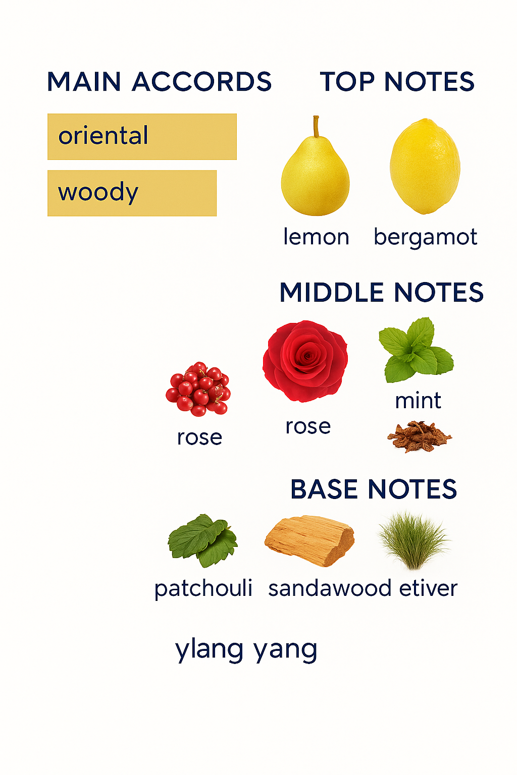 Base: A deep composition of patchouli, sandalwood, vetiver and lavender.