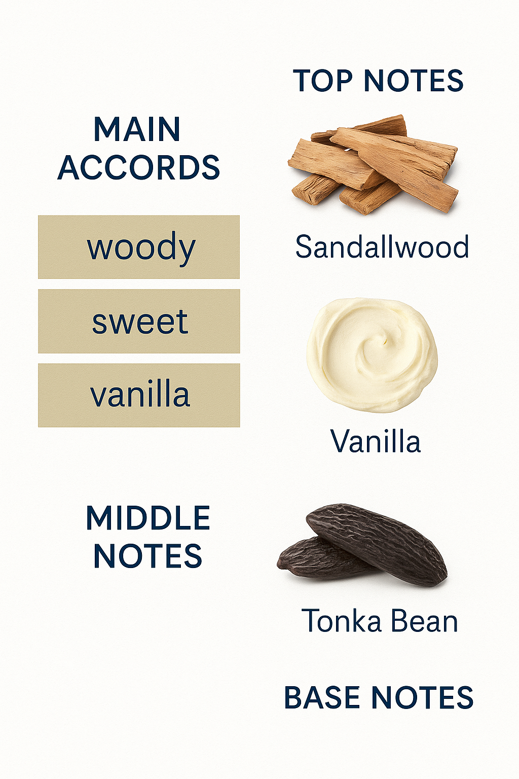 Delight in this exceptional perfume, featuring a refined blend of sandalwood, vanilla, and tonka bean — leaving a memorable trail wherever you go.