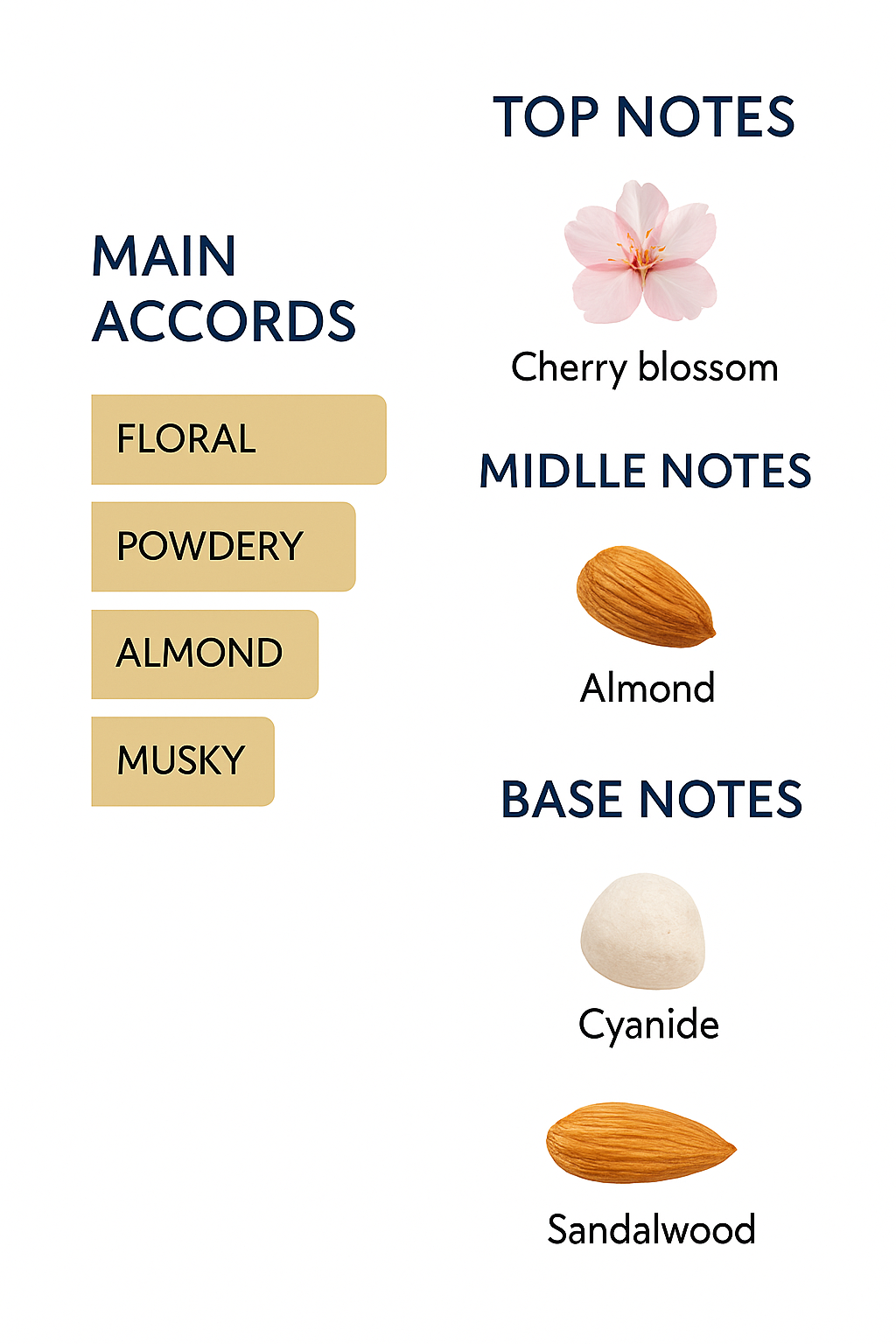 The fragrance comes in a bottle decorated with an elegant design that highlights the beauty of cherry blossoms.