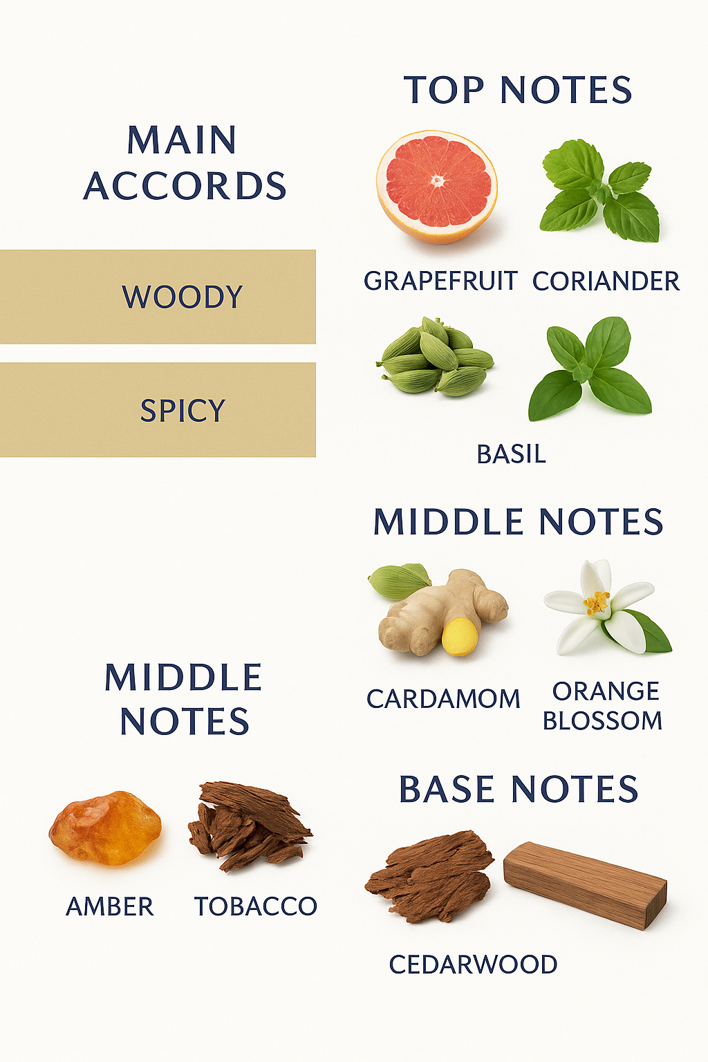 A woody fragrance with an enhanced and intense version of the scent. It aims to become a classic masculine fragrance, with a wonderful blend of grapefruit extract and ginger.