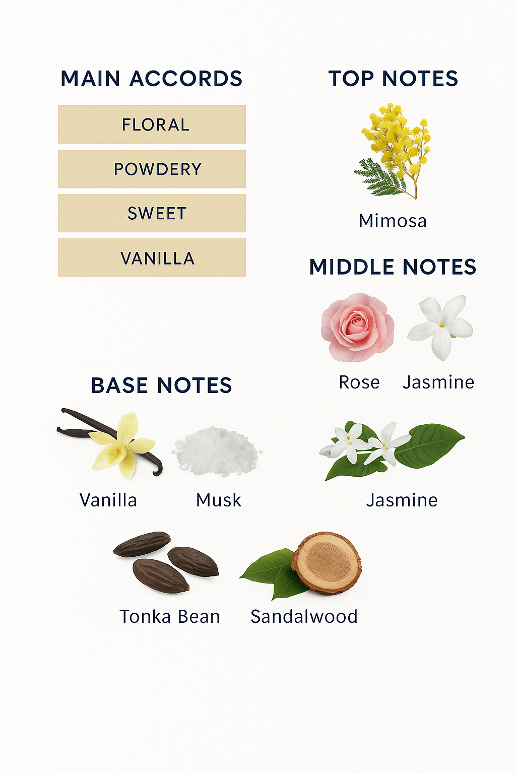 While the base concludes the composition with vanilla, musk, tonka bean, vetiver and sandalwood.