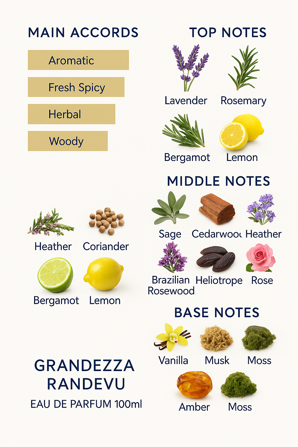 A high-class masculine fragrance that reveals your beautiful secrets and bright sides in your refreshing spirit, thanks to lavender and vanilla flowers lovingly soaked in a rich amber liquid. It wins everyone's admiration and turns all heads.