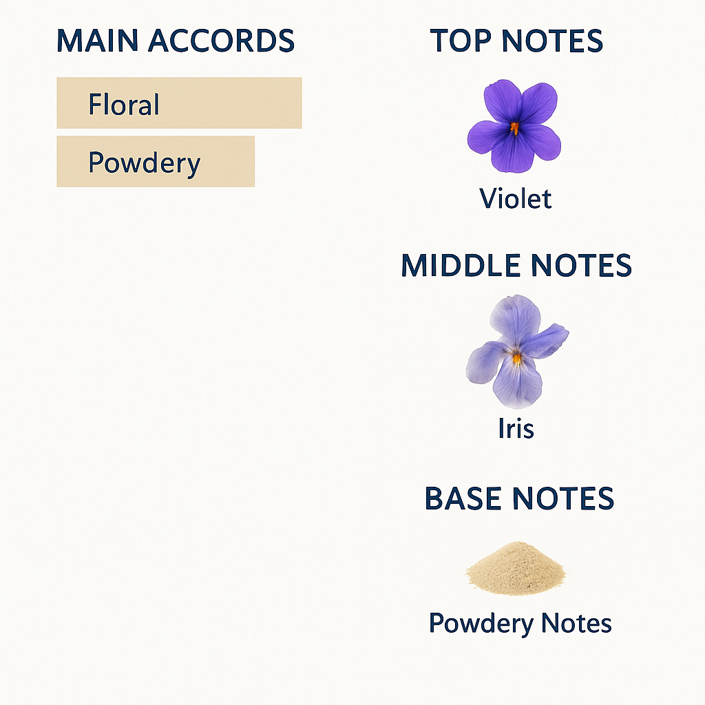 It is the manifestation of the delicate violet flower that expresses the captivating and attractive female spirit. Soft powder particles fly around you and harmonize with the scent of iris to give you a captivating scent. The fragrance immerses you in feelings of attraction and love to live the most beautiful moments of softness in your special nights. This captivating composition is your ideal choice in your special days to remain a different and distinctive memory in your life.