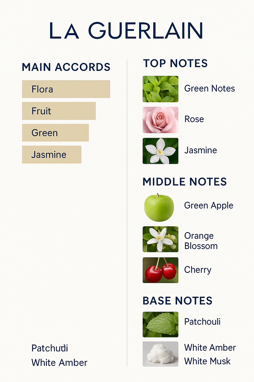 While the base notes are patchouli, white amber and white musk.