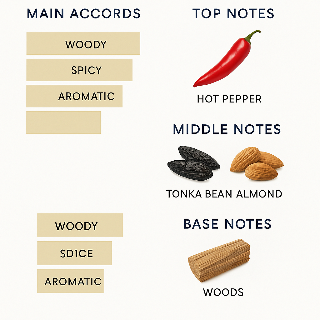 There is no doubt that the legendary elegance of men is achieved with a distinctive and unique perfume that creates a distinctive identity for him that shines in the sky of any society as soon as it appears. Therefore, the strong and fragrant masculine woody perfume formula of hot pepper, tonka beans and almonds mixed with a large group of glowing and bold aromatic scents is the ideal choice to reach your goal with ease and gain a unique place in the hearts of those present.