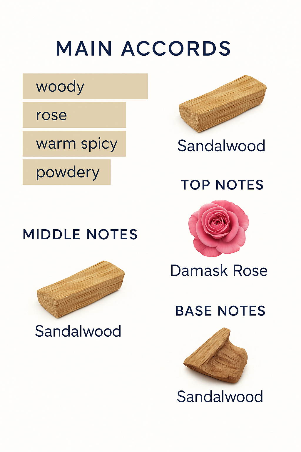 A luxurious unisex fragrance, combining rich sandalwood notes with captivating Damask rose.