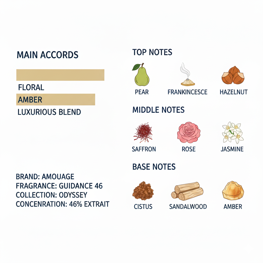 Indulge in Guidance 46 Exceptional Extrait by Amouage — a captivating blend that harmoniously balances floral softness with the warmth of amber.
