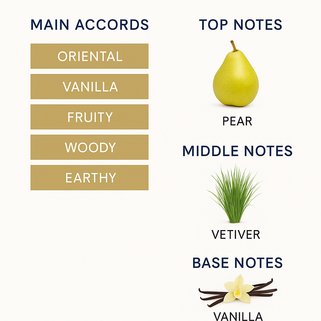 La Belle is a feminine, elegant fragrance with an oriental vanilla scent. The fragrance was recently launched in 2019. It is distinguished and attractive with luxurious aromatic notes that begin with an elegant bouquet of pear, passing through the heart of the composition with vetiver. The base of the composition concludes with vanilla.
