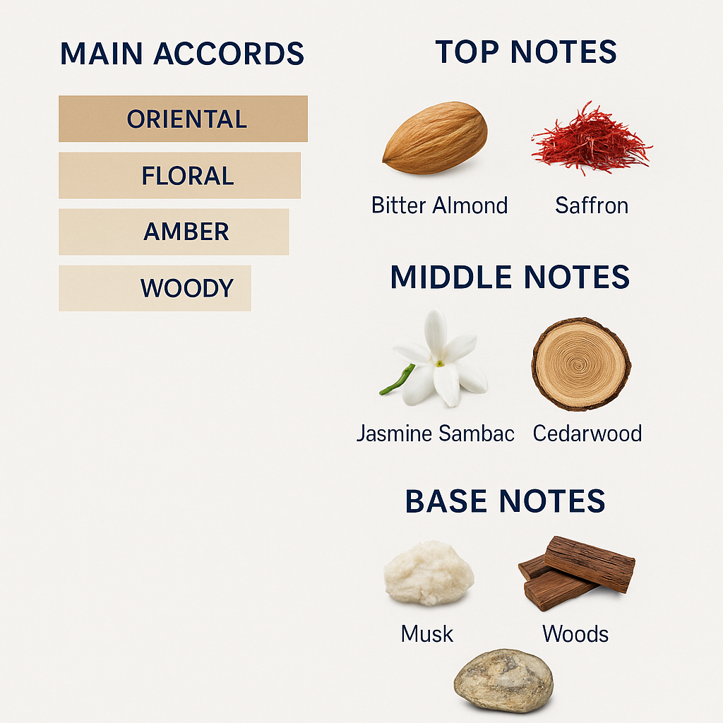 A luxurious fragrance for men and women: combining delicate floral notes with mysterious oriental notes.