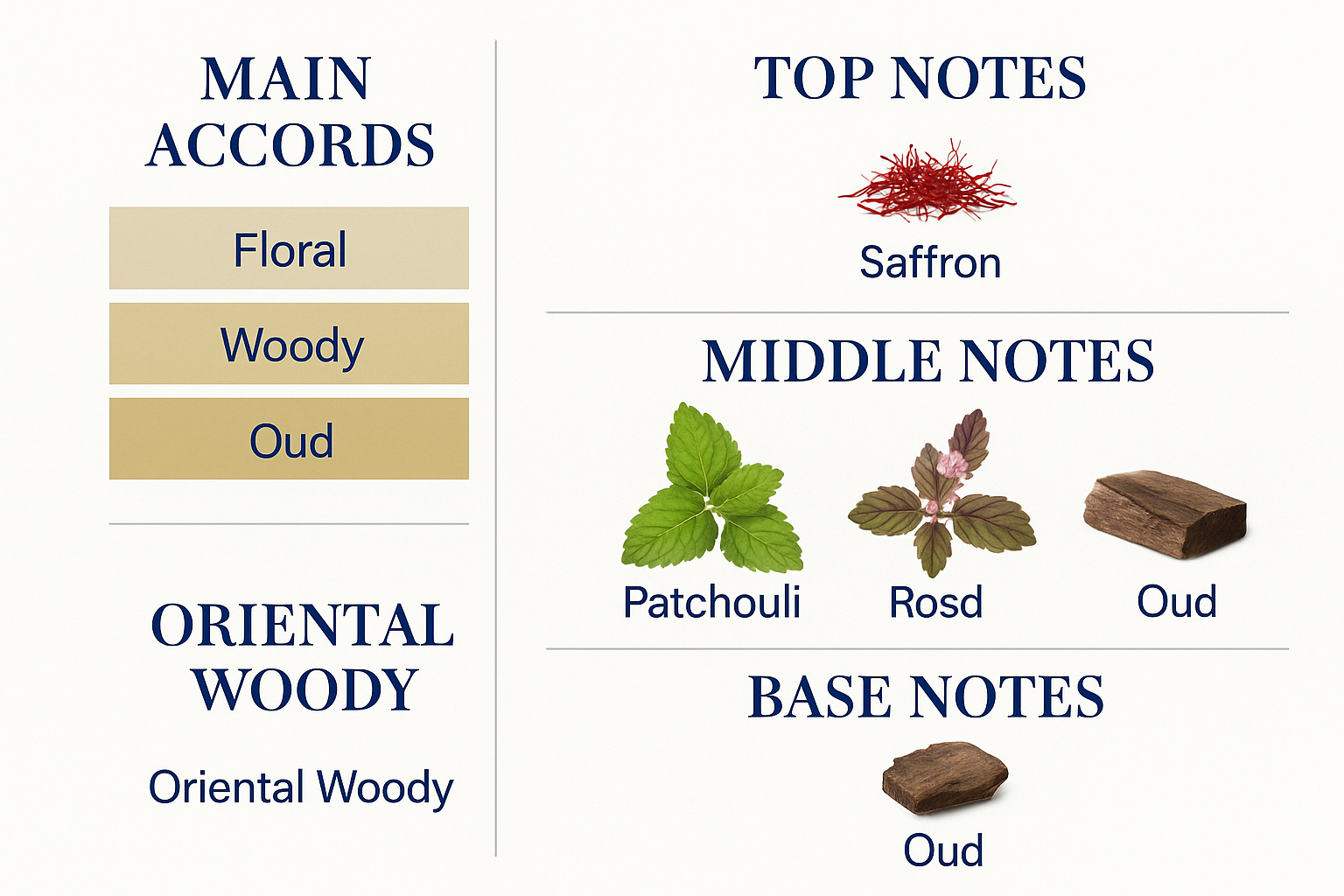 An oriental woody fragrance for men and women, it gives you a precious and luxurious scent, representing and expressing in a modern style the ancient Arabian perfumes, with an amazing blend of patchouli, saffron, and oud.