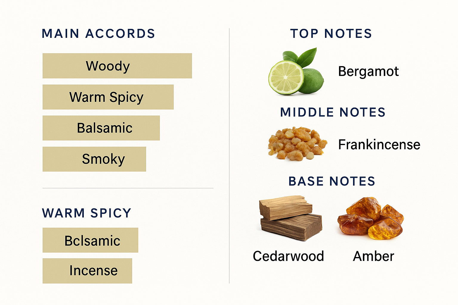 An oriental fragrance for men inspired by woody notes and distinctive incense.