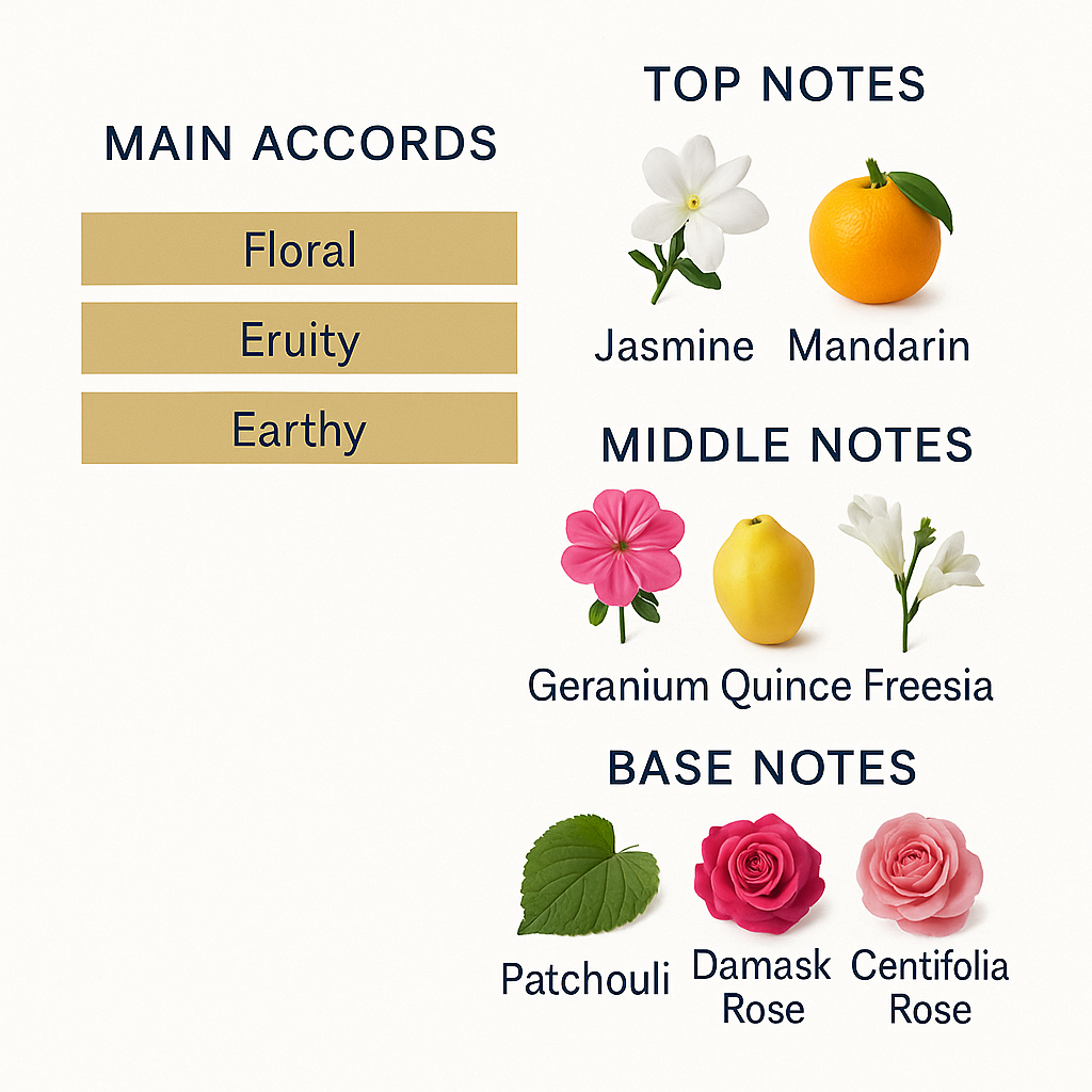My Burberry Eau de Parfum for Women is a bright, floral, oily fragrance launched in 2014 by the renowned British fashion house Burberry. It is known for being elegant, modern, and perfect for the confident, contemporary woman. Upon first spraying, you will be surprised by a burst of fresh citrus that awakens your senses. Jasmine adds a subtle earthiness, while mandarin orange brings a fruity sweetness to the heart. Once the top notes subside, the heart of the fragrance begins to emerge. Geranium, quince, and freesia blossom, giving the fragrance an elegant touch. Base Notes: Over time, the warm, earthy base of the fragrance unfolds. Patchouli adds depth and warmth, while Damask rose and Centifolia rose add a delicate, powdery touch.
