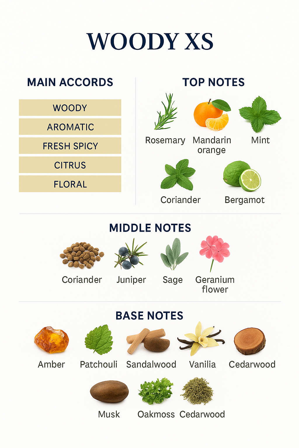 Heart Notes: Coriander, juniper, sage, geranium flower, and Brazilian rosewood.