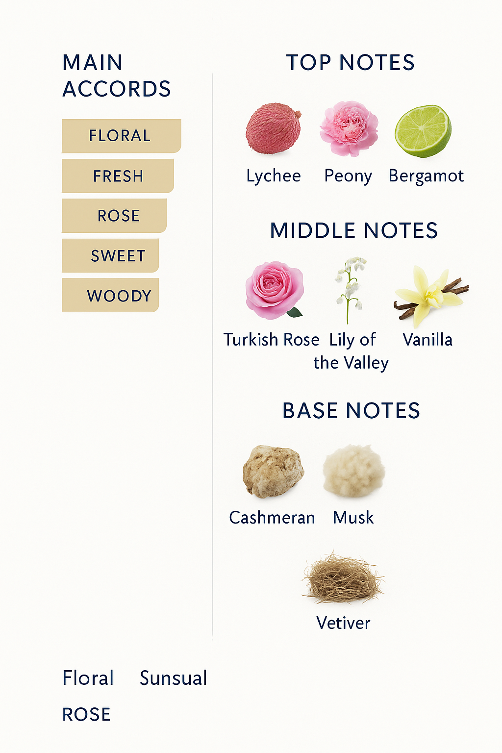 Feminine and sensual, it strikes a perfect balance between softness and warmth, with an irresistible charm that captures attention.