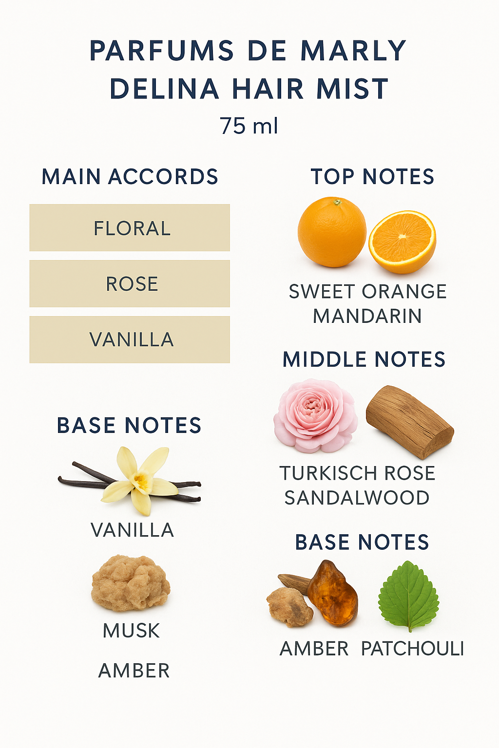 Excellent Longevity: Offers long-lasting fragrance on the hair, perfect for daily use or special occasions.Moderate Sillage: Leaves a noticeable, warm, and captivating trail.Nourishes the Hair: More than just a scent—Delina Hair Mist is enriched with nourishing ingredients that moisturize, soften, and add shine to the hair.Easy to Use: Comes in a sleek, user-friendly bottle for effortless and even application.