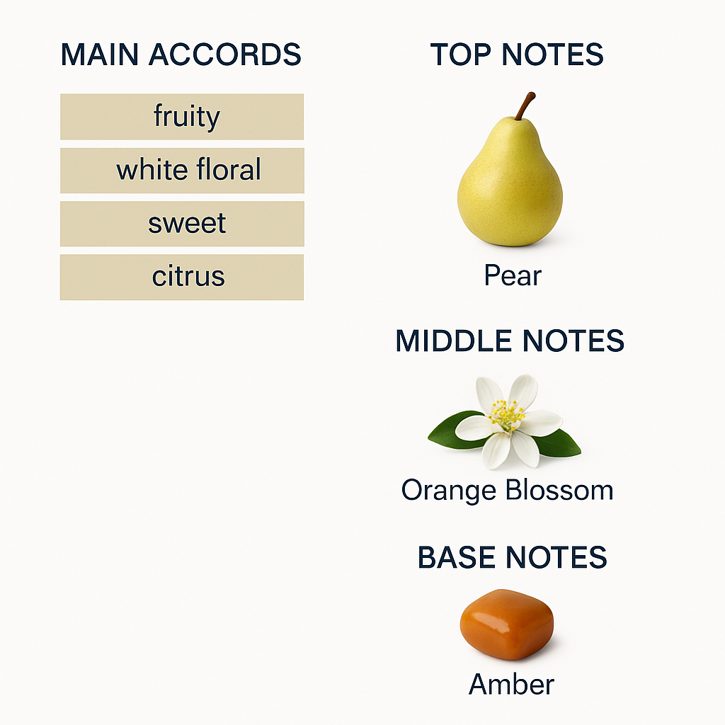 A luxurious floral fragrance for women, inspired by the spirit of 18th-century lavish celebrations. It offers you a refined and beautiful scent that exudes opulence, featuring a stunning blend of refreshing pear, delicate orange blossom, and warm amber—creating a perfect balance between freshness and depth.