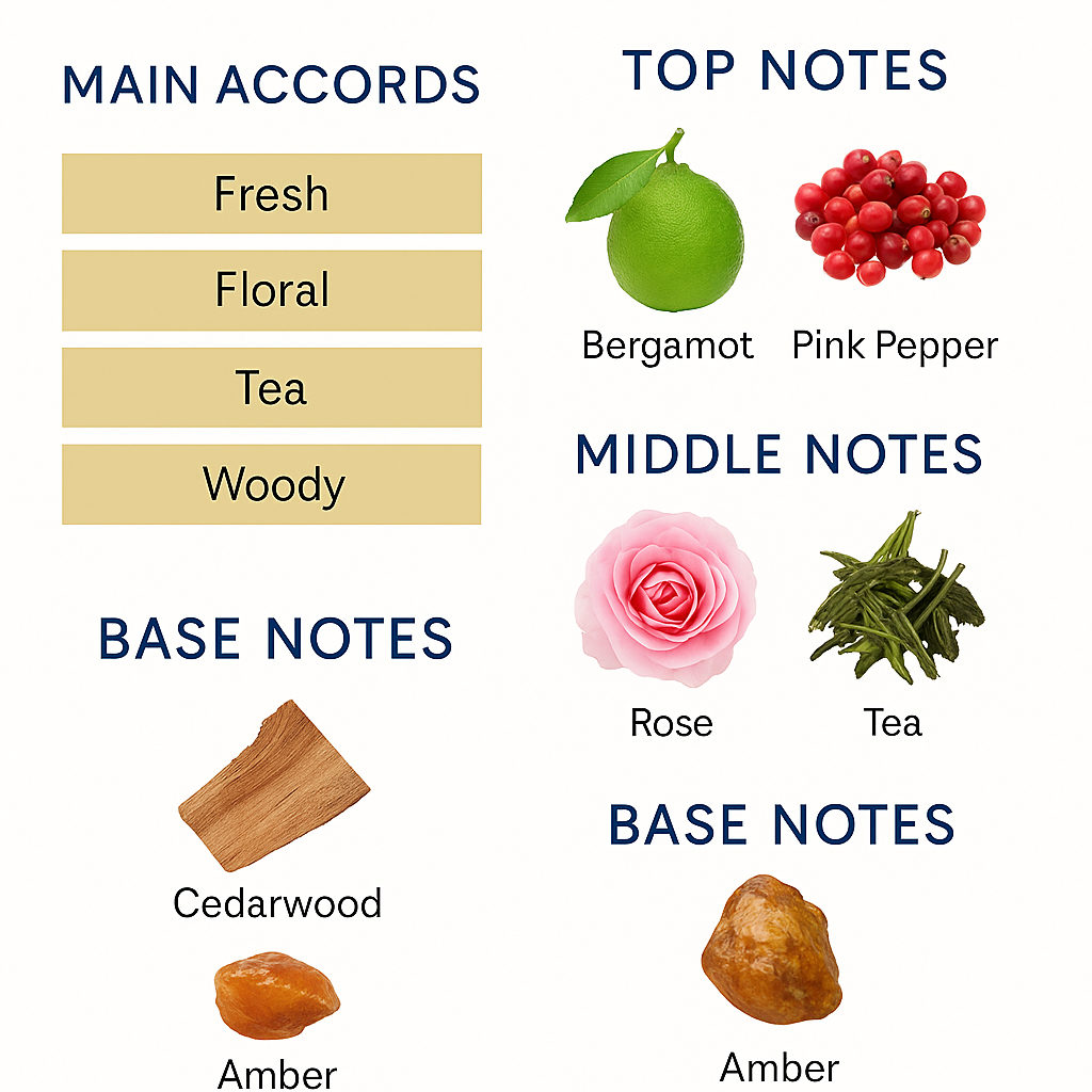 Often opens with fresh and lively notes, such as citrus accords like bergamot or lemon, or gentle spices like pink pepper.