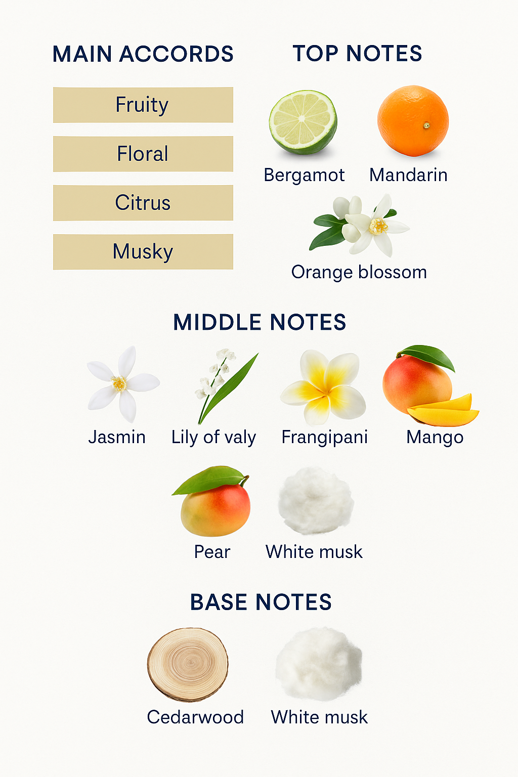 Roberto Cavalli Just Cavalli Eau de Toilette is a bright, fruity, floral fragrance for women launched in 2013. It embodies the spirit of a young, modern, and energetic woman and exudes a happy and fresh vibe. An explosion of flowers and fruits. The opening notes of the fragrance are a fresh explosion of citrus fruits such as bergamot, mandarin, and orange blossom, creating a sense of vitality and freshness. The heart of the fragrance is highlighted by a floral bouquet of jasmine, lily of the valley, and francisco, harmonized with delicious fruity notes of mango and pear, creating a sense of femininity and tenderness. The base rests on warm touches of cedarwood and white musk, leaving an unforgettable and long-lasting effect. Just Cavalli's sensations are bright and fresh. Feminine and attractive. Playful and lively. Suitable for daytime and party occasions. Just Cavalli Features: A unique and balanced floral and fruity blend. High-quality natural ingredients. Medium to strong sillage that lasts a long time. Suitable for the young woman who loves life. The essence of Roberto Cavalli Just Cavalli Eau de Toilette is a charming fragrance that reflects the joy of youth and the sunny atmosphere of summer. It is the perfect choice for the woman who wants to leave a lively and happy impression.