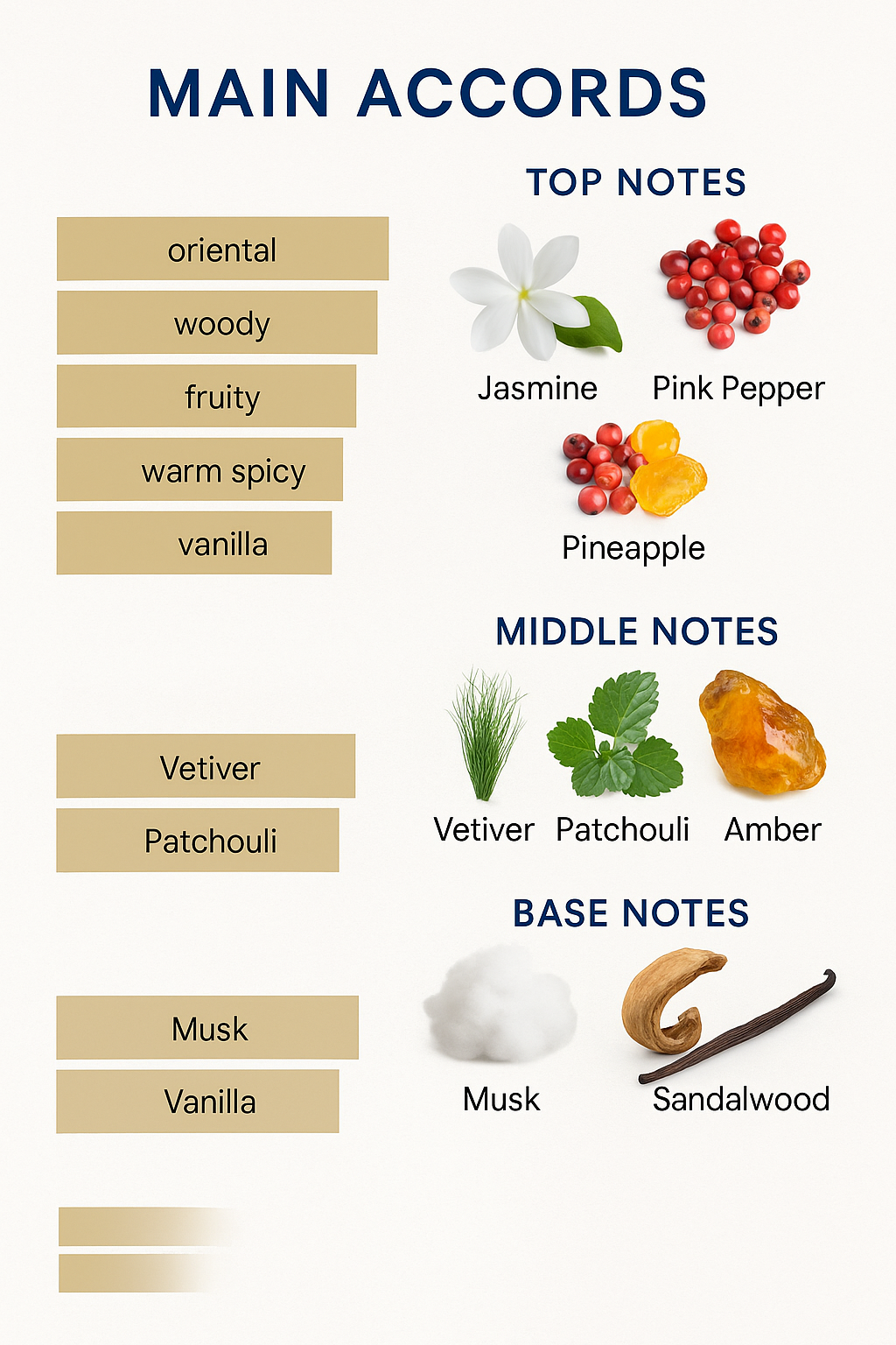 Unique Blend: This fragrance combines traditional ingredients like jasmine and patchouli with modern notes like pineapple and pink pepper, creating a unique fragrance experience.