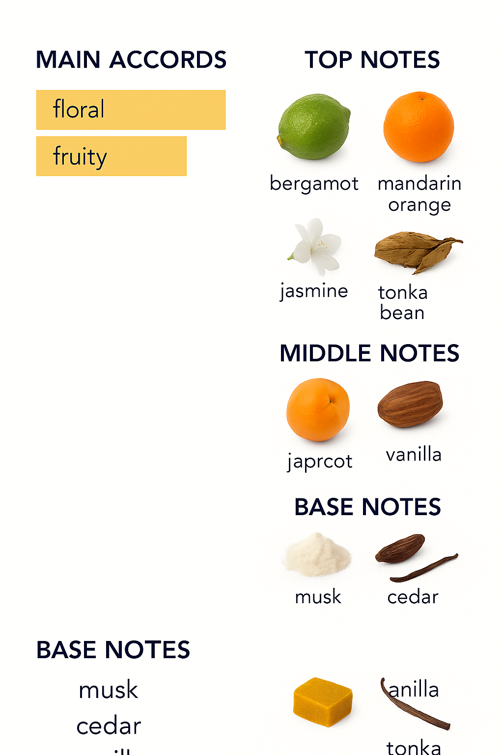 Top notes: bergamot, mandarin orange, tobacco leaves