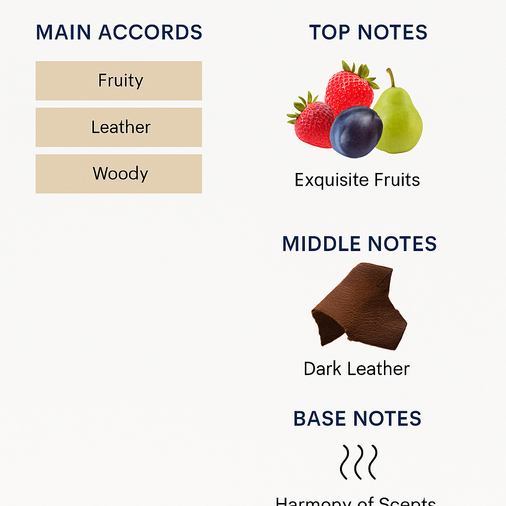 It features a unique composition that combines fruity notes and leather scents, making it suitable for evening use and special occasions.