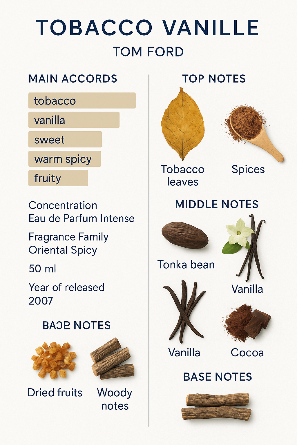 Heart Notes: Tonka bean, tobacco flower, vanilla, and cocoa