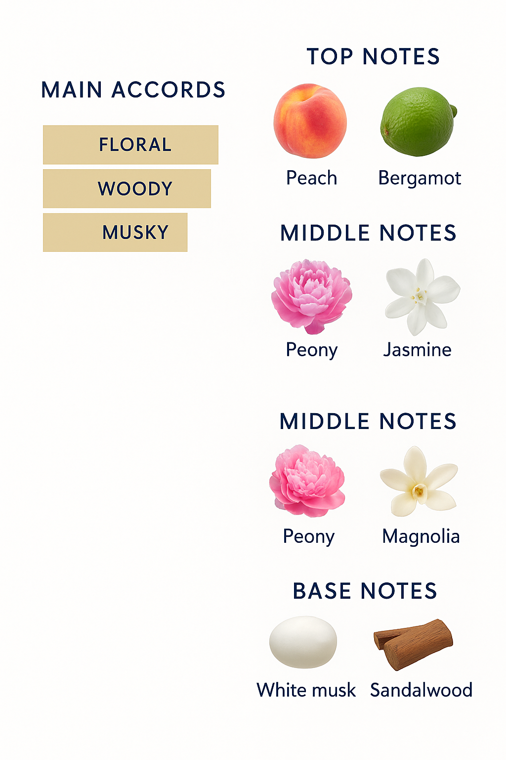The base notes finish with white musk and sandalwood.