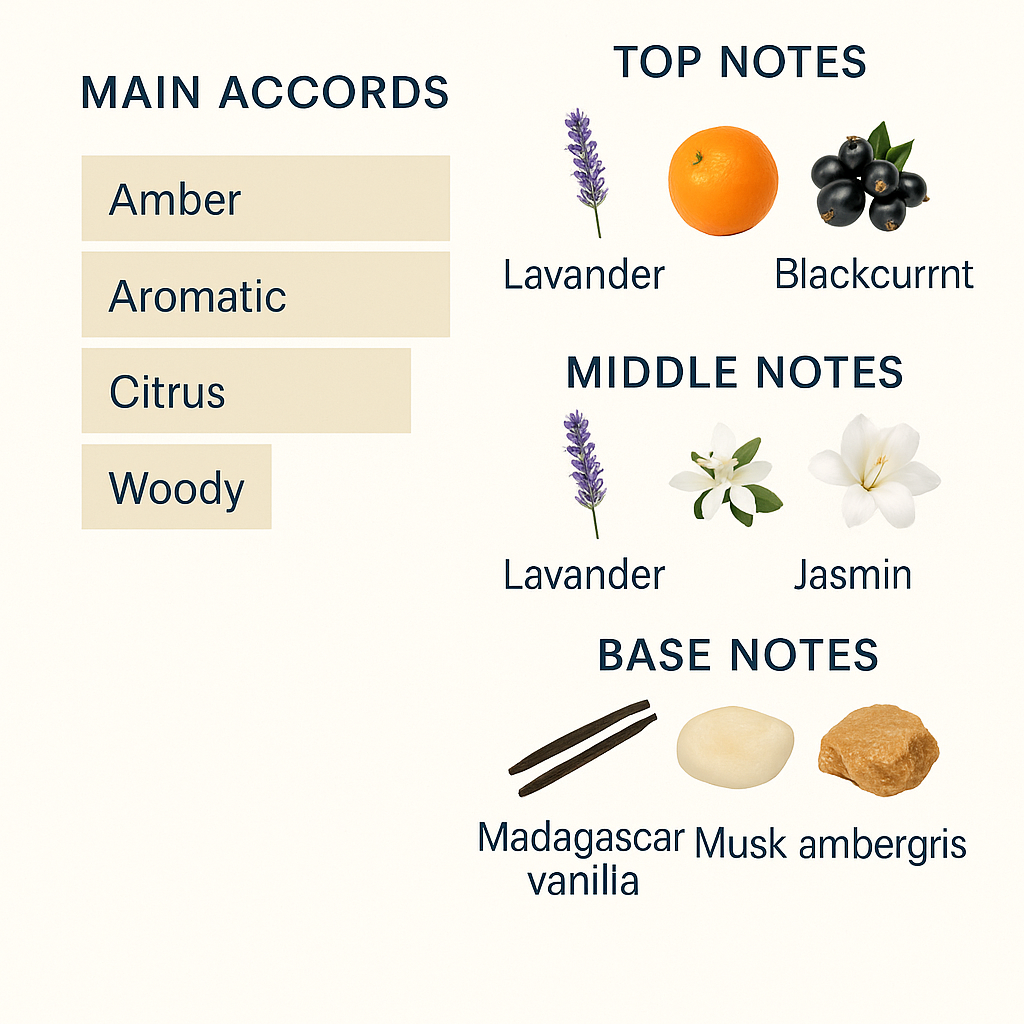 Top notes: Lavender, mandarin, blackcurrant, and bitter orange